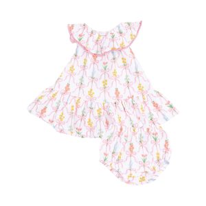 - Gingham sleeveless with smocked chest and ruffle flounce
